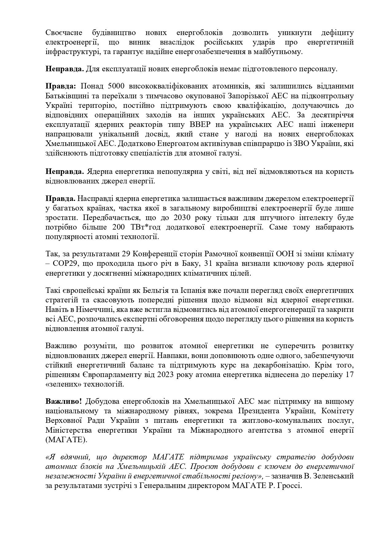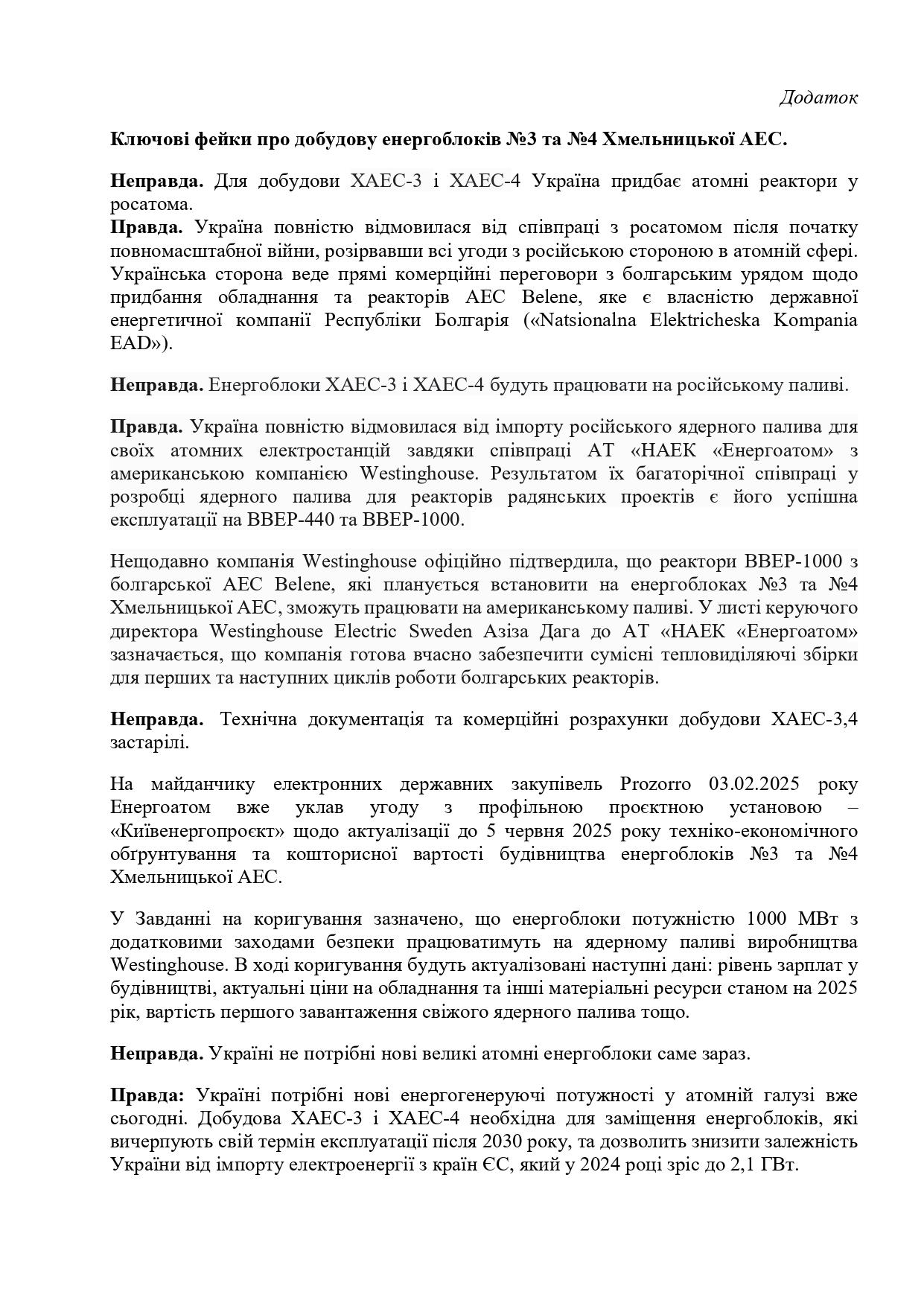 Міністерство культури та стратегічних комунікацій України звертається про спростування маніпулятивної та неправдивої інформації про добудову енергоблоків №3 та №4 Хмельницької АЕС