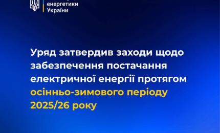 Уряд затвердив заходи щодо забезпечення постачання електричної енергії протягом осінньо-зимового періоду 2025/26 року