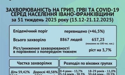 Епідемічна ситуація щодо грипу, ГРВІ та COVID-19 в області: захворюваність зросла на 3,7%