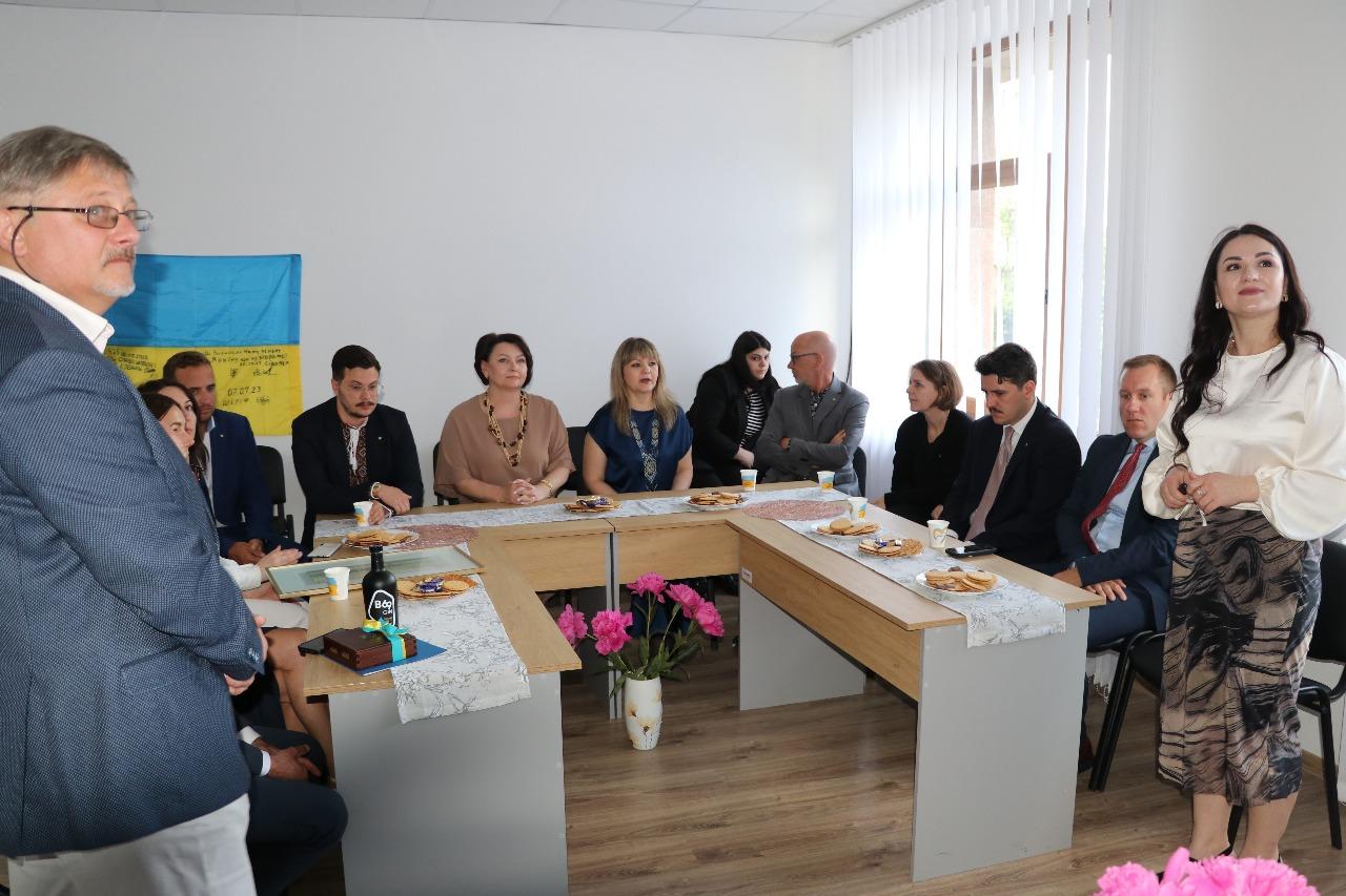 Заступниця голови обласної державної адміністрації Людмила Сірко подякувала австрійській делегації за солідарність, зокрема допомогу від жіночого руху GUTA (Брегенц) в облаштуванні у ветеранському просторі дитячої кімнати, та розповіла про розвиток ветеранської політики в області. Вона зазначила, що необхідно надати не тільки фізичну реабілітацію, але й психологічну, а також насамперед – повний пакет соціальної допомоги.