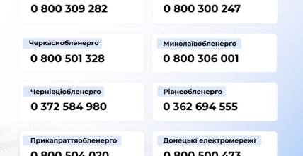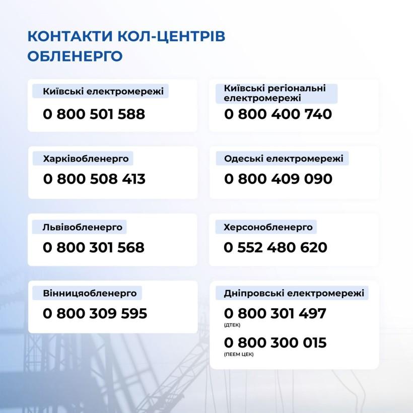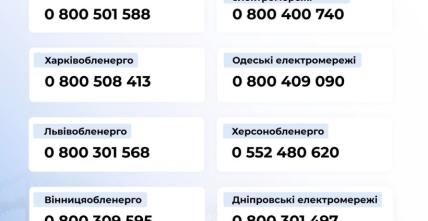 Також для загальних запитань щодо енергетики та роботи системи електропостачання можна звертатися до Міненерго за номерами: 0-800-507-052, 044-594-65-45.