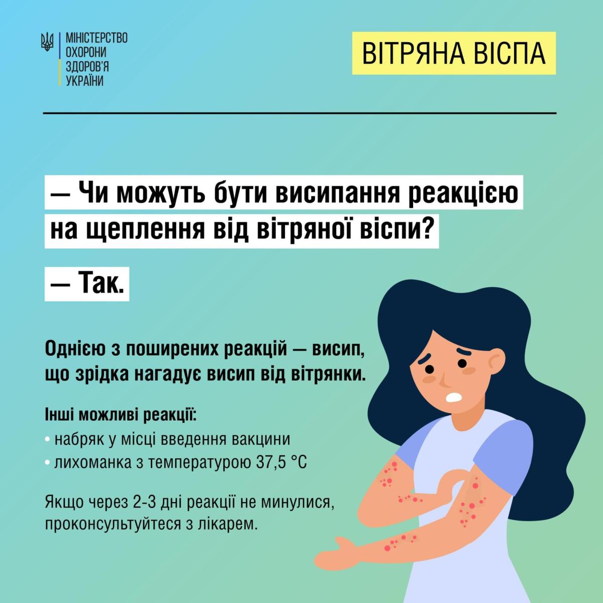 Питання: Чи можуть бути висипання реакцією на щеплення від вітряної віспи?