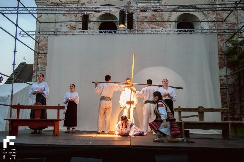 Зазначимо, що Франківський драмтеатр зіграв виставу поблизу цього костелу вже вдруге. Цьогоріч прикарпатські актори представили знакову і для театру, і для всього українського народу постановку Ростислава Держипільського за однойменним твором Марії Матіос.