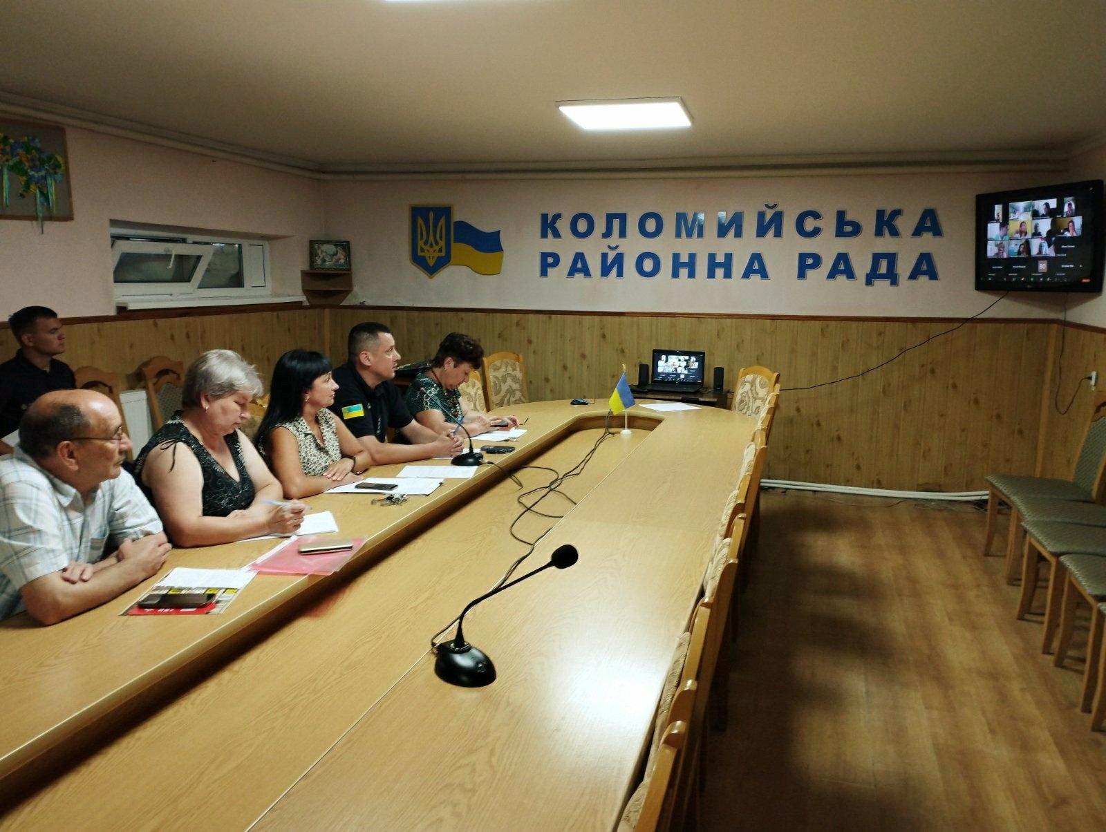 Сьогодні під керівництвом заступниці голови райдержадміністрації Ганни Кравчук відбулася онлайн - нарада за участі першого заступника голови райдержадміністрації Любові Михайлишин, начальника Коломийського районного управління ГУ ДСНС України в Івано-Франківській області Андрія Мочерняка, начальника Коломийського районного відділу Державної установи "Івано-Франківський обласний центр контролю та профілактики хвороб Міністерства охорони здоров'я України" Івана Ковальчука та керівників органів управління освітою територіальних громад Коломийського району.