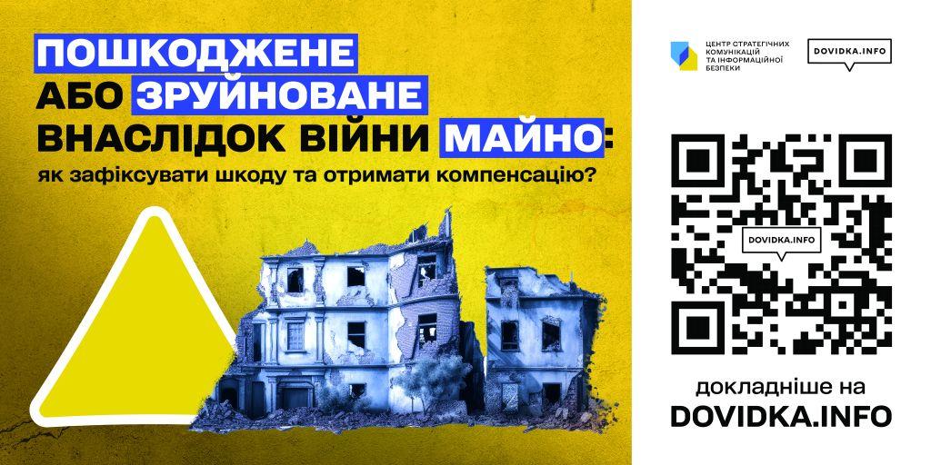 Центром стратегічних комунікацій та інформаційної безпеки розпочата інформаційна кампанія «Довідка.Інфо», яка направлена на інформування населення про основи кібербезпеки, протимінної безпеки та алгоритму відшкодування коштів за зруйноване чи пошкоджене майно.