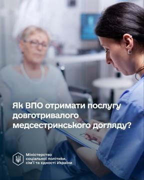 Міністерство соціальної політики, сім’ї та єдності України запровадило експериментальний проєкт з оплати довготривалого медсестринського догляду внутрішньо переміщених осіб.
