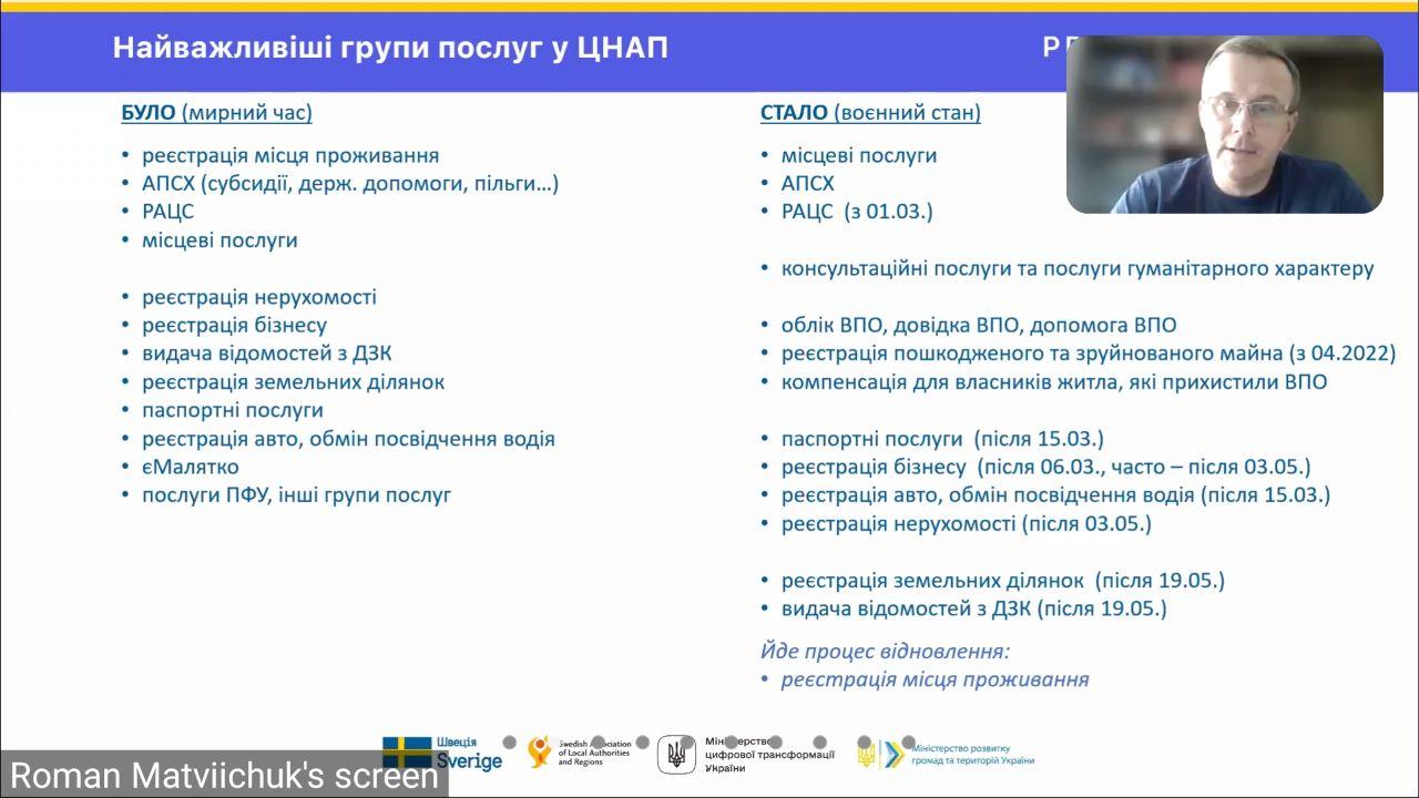 У вступному слові посадовець наголосив, що для розвитку і покращення якості надання державних послуг, які надаються через центри надання адміністративних послуг, важливою є взаємодія керівників ЦНАПів між собою. Завдяки взаємодії відбувається швидкий обмін кращими практиками та відновлення роботи центрів у воєнний та післявоєнний періоди. Сьогодні ключовими особами, які впливають на адаптацію надання адміністративних послуг у громадах, є саме працівники ЦНАПів.