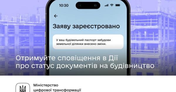 - Автоматично отримуєте сповіщення в застосунок «Дія» про статус чи готовність документа.