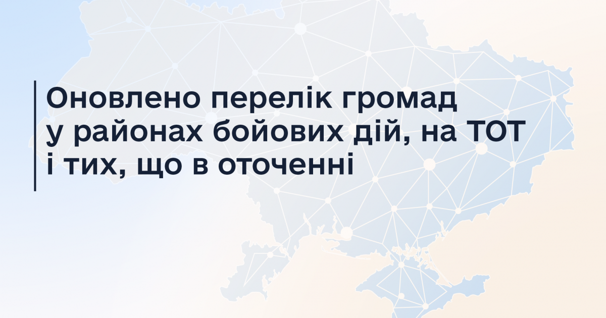 До оновленого переліку територіальних громад, розташованих у районах проведення воєнних (бойових) дій, або тих, які перебувають у тимчасовій окупації, оточенні (блокуванні), входить 9 областей.