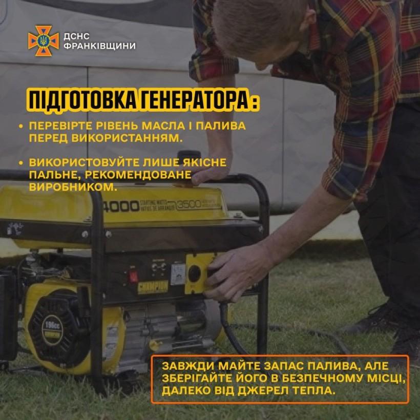 В період планових чи аварійних вимкнень електроенергії генератори стають надійною підтримкою для домівок, закладів та підприємств. Проте їхнє неправильне використання може призвести до загрози життю та майну. Щоб уникнути пожеж, отруєння чадним газом і небезпечних ситуацій, рятувальники Прикарпаття нагадують основні правила, яких варто неухильно дотримуватися.