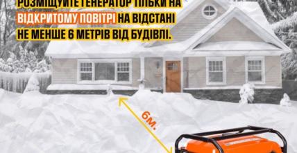 - розміщуйте генератор лише на відкритому повітрі або в добре провітрюваному місці, подалі від вікон і дверей;