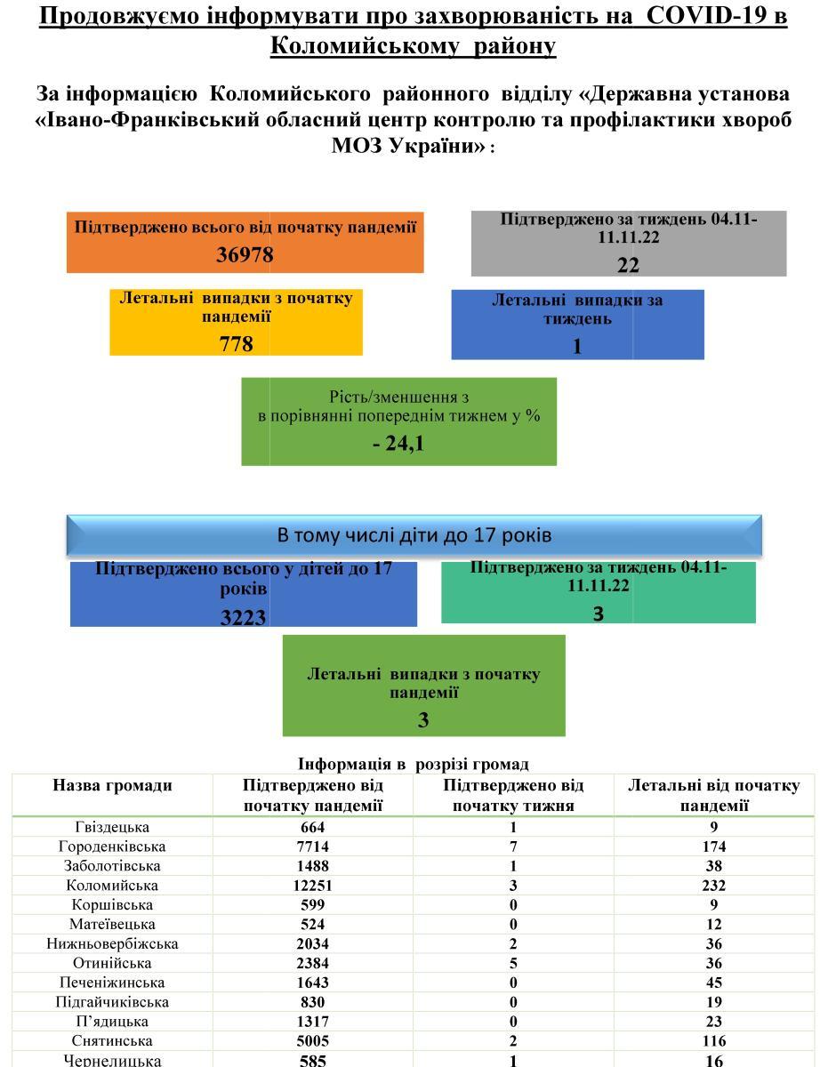 Продовжуємо інформувати про захворюваність на COVID-19 в Коломийському району