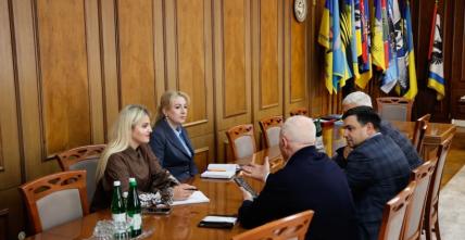 Голова обласної державної адміністрації - начальниця обласної військової адміністрації Світлана Онищук зустрілася з представниками Українського культурного фонду — Дмитром Решетченком, заступником виконавчої директорки з проєктної роботи, продюсером Олегом Щербиною та керівником мистецької агенції «Мантикора» Віктором Вінтоняком.