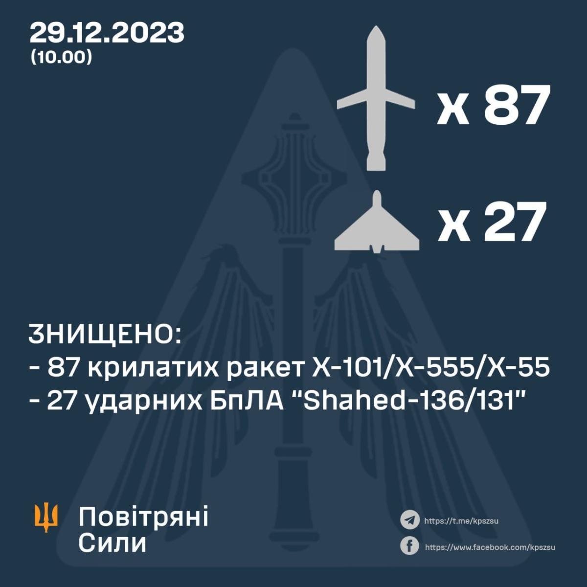 Зі слів речника Повітряних сил Юрія Ігната, стільки повітряних цілей одночасно на своїх моніторах ще не бачили. Для атаки ворог використовував 18 стратегічних бомбардувальників та різні види ракет.