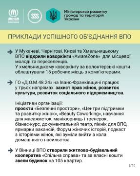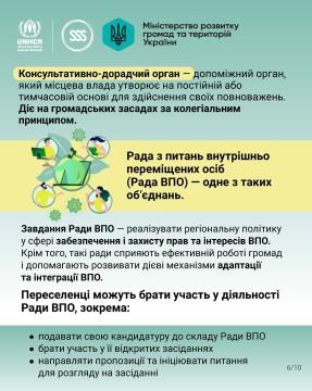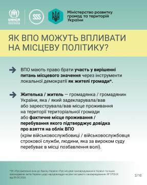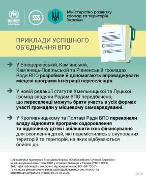 В інфографіці пропонуємо ознайомитись з детальною інформацією про те, як ВПО можуть впливати на місцеву політику та досягати успіхів завдяки спільним зусиллям.