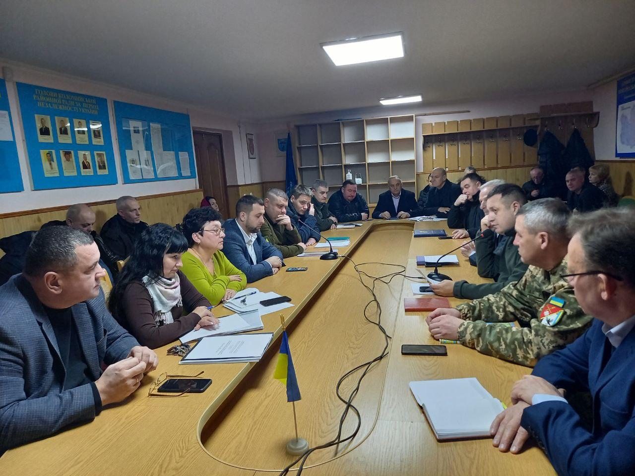 Любомир Глушков заслухав доповіді керівників силових структур щодо ситуації в районі, дотримання комендантської години, а також питання мобілізації військовослужбовців та техніки на підтримку Збройних Сил України та подякував головам громад за тісну співпрацю в підтримці Збройних Сил України.