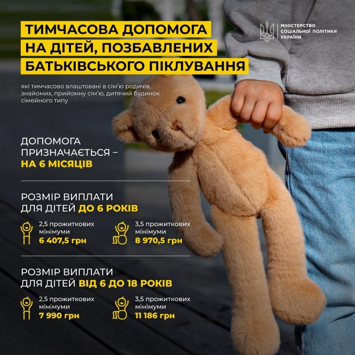 Запроваджуємо для таких родин допомогу «Дитина не одна». Її можна отримати на дітей, які залишились без батьківського піклування, але ще не набули статусу дитини-сироти або дитини, позбавленої батьківського піклування.