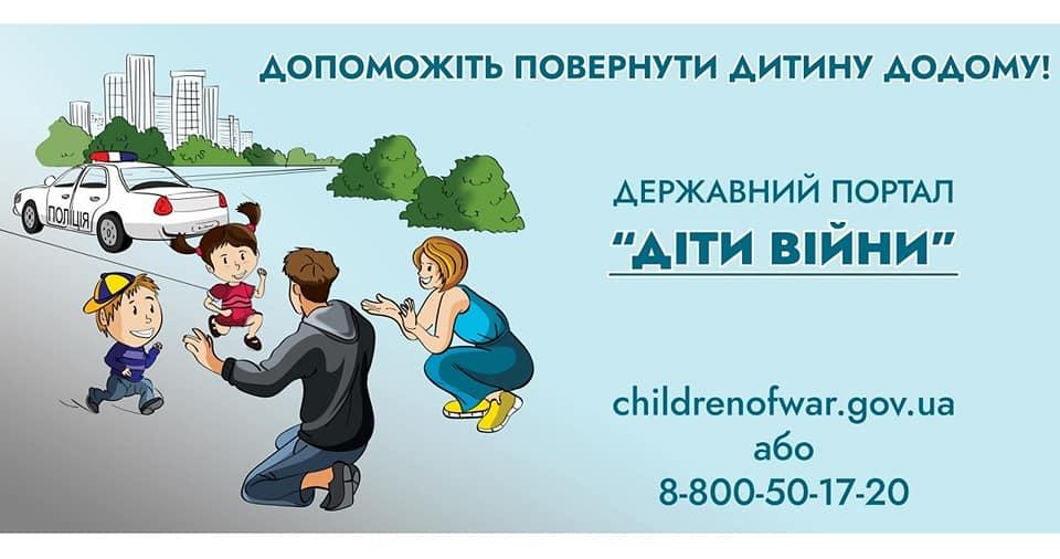 Якщо вам відома будь-яка інформація про зниклу чи депортовану дитину, повідомте її на державному порталі «Діти війни» за адресою: childrenofwar.gov.ua або за номером телефону 0-800-50-17-20.