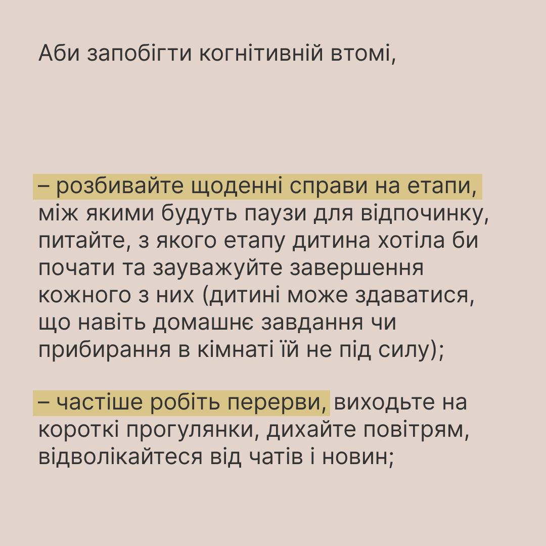 Як запобігти когнітивній утомі та вберегти від неї себе і дитину, розповіла психологиня Світлана Ройз. Читайте більше на картках від Всеукраїнської програми ментального здоровʼя Ти як? та UNICEF Ukraine