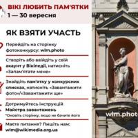 З 1 по 30 вересня запрошуємо всіх подавати на конкурс фотографії власного авторства пам'яток архітектури, історії, містобудування, садово-паркового мистецтва тощо, наповнювати Вікісховище і змагатися за цінні призи у кількох номінаціях.