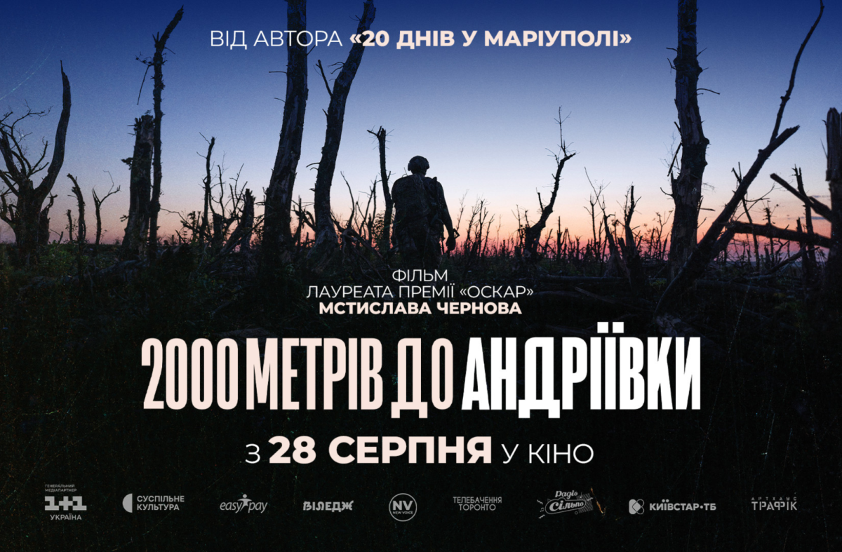 З 28 серпня у кінотеатрах України розпочинається показ документального фільму «2000 метрів до Андріївки» від оскароносного режисера Мстислава Чернова, автора стрічки «20 днів у Маріуполі».