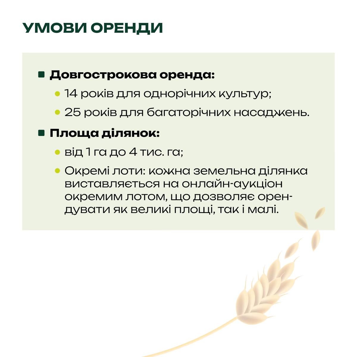 Перші 16 лотів з оренди землі – вже на платформі «Прозорро. Продажі». Ділянки розташовані у Вінницькій області. Розмір – від 2 до 262 гектарів. Онлайн-торги заплановані на 1 жовтня 2024 року.
