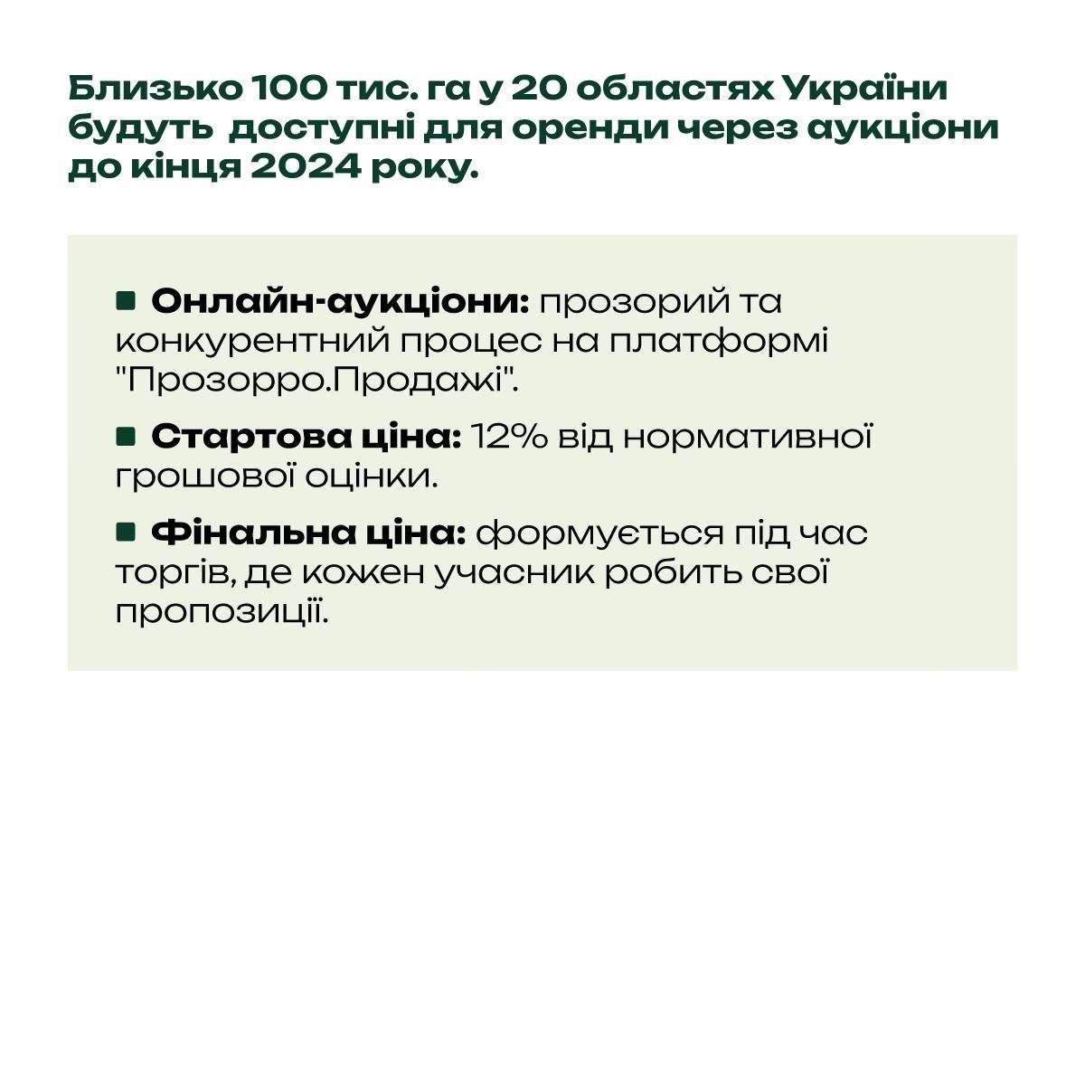 Незабаром на аукціоні з’являться ділянки у Хмельницькій, Кіровоградській, Київській та Запорізькій областях. Загалом проєкт охопить 105 територіальних громад у 20 областях України.