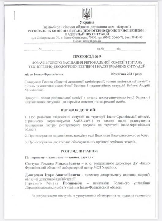 Протокол засідання регіональної комісії з питань техногенно-екологічної безпеки і надзвичайних ситуацій