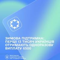 Вже сьогодні, 6 грудня, 13 086 українців із найбільш незахищених категорій отримають виплату 6 500 грн у межах урядової програми «Зимова підтримка». Перші транші на суму 85 млн грн уже надійшли на спеціальні рахунки.