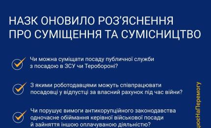 Посадовці в простої та відпустці без збереження зарплатні на період воєнного стану можуть працювати на інших роботах без порушення вимог суміщення та сумісництва