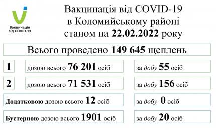 Інформуємо щодо захворюваності на COVID-19 на території Коломийського району (станом на 22.02.2022 року)
