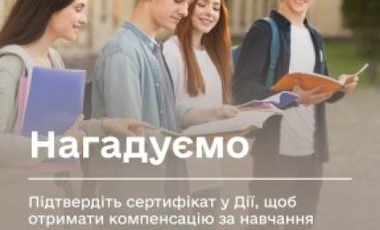 Нагадуємо: підтвердіть сертифікат у Дії, щоб отримати компенсацію за навчання дітей Захисників і Захисниць
